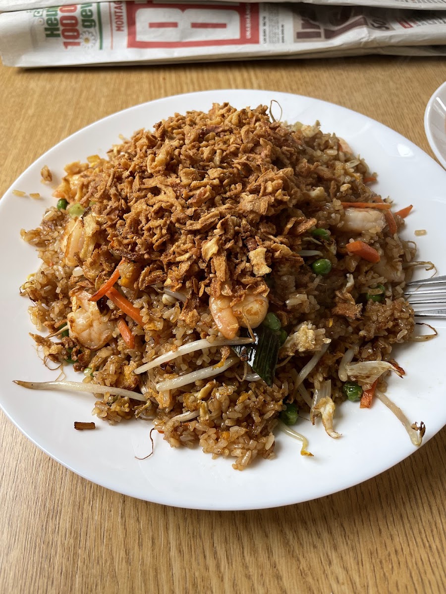 Sehr freundliche Gastgeber. Ambiente und Ausstattung sehr einfach, man kann aber mit 3-4Personen auch dort essen. Ich wählte die vegetarischen Frühlingsrollen als Vorspeise, Hauptspeise gebratener Reis mit Gemüse und Krabben. Geschmacklich alles sehr gut. Einziges Manko: Die trockenen Röstzwiebel als quasi Topping waren nicht so mein Geschmack, wenn es auch sicher gut gemeint war. Portionsgröße mehr als ausreichend und der Preis war unschlagbar. Daher in Summe absolute Empfehlung